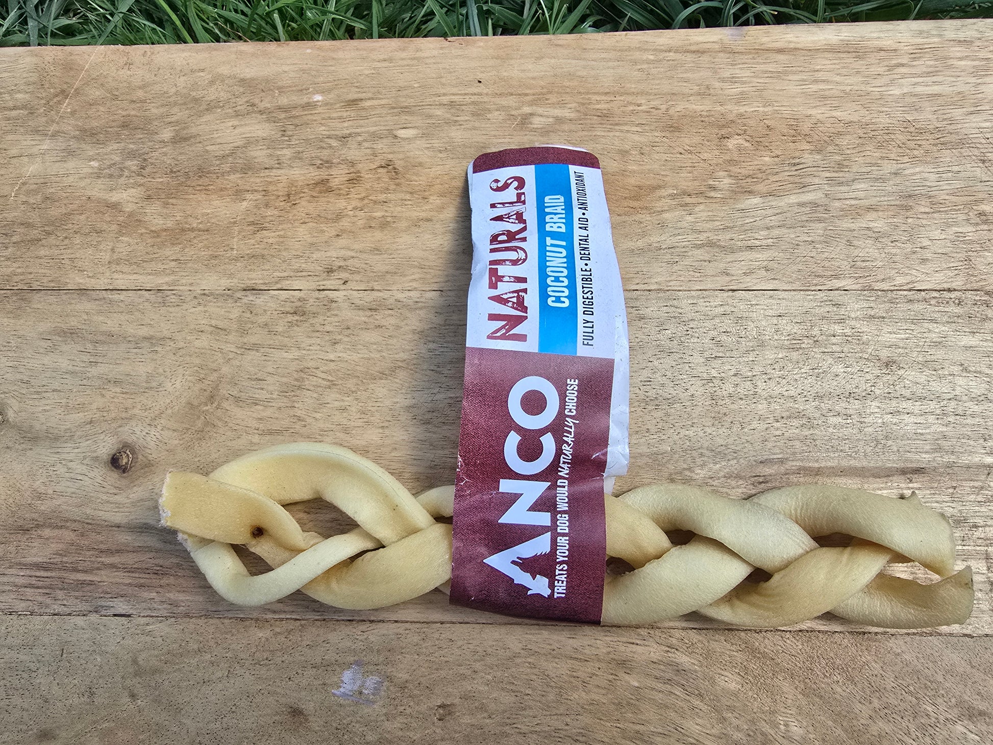 Introducing the new Anco Coconut Braid, a tasty treat for your dog! Combining high-quality beef protein with a hint of natural coconut, this braid not only provides mental stimulation for your dog, but also helps keep their teeth clean and gums healthy. Try it now!