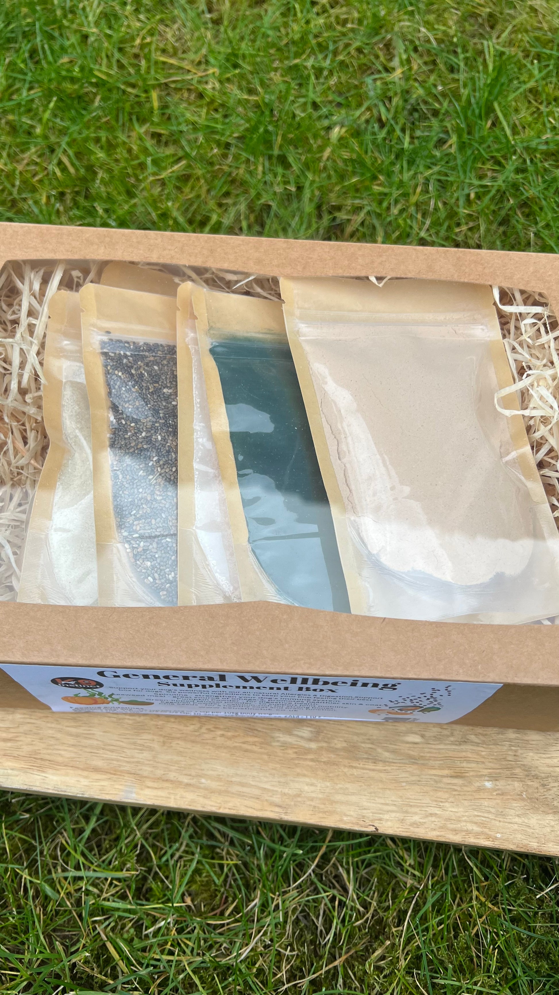 This powerhouse supplement box combines premium superfoods: nutrient-rich spirulina and seaweed meal packed with essential minerals, antioxidant-rich pumpkin powder for digestive health, green lipped mussel powder to support joint mobility, calcium-rich eggshell powder for strong bones, and omega-rich chia seeds for a healthy coat and brain function.